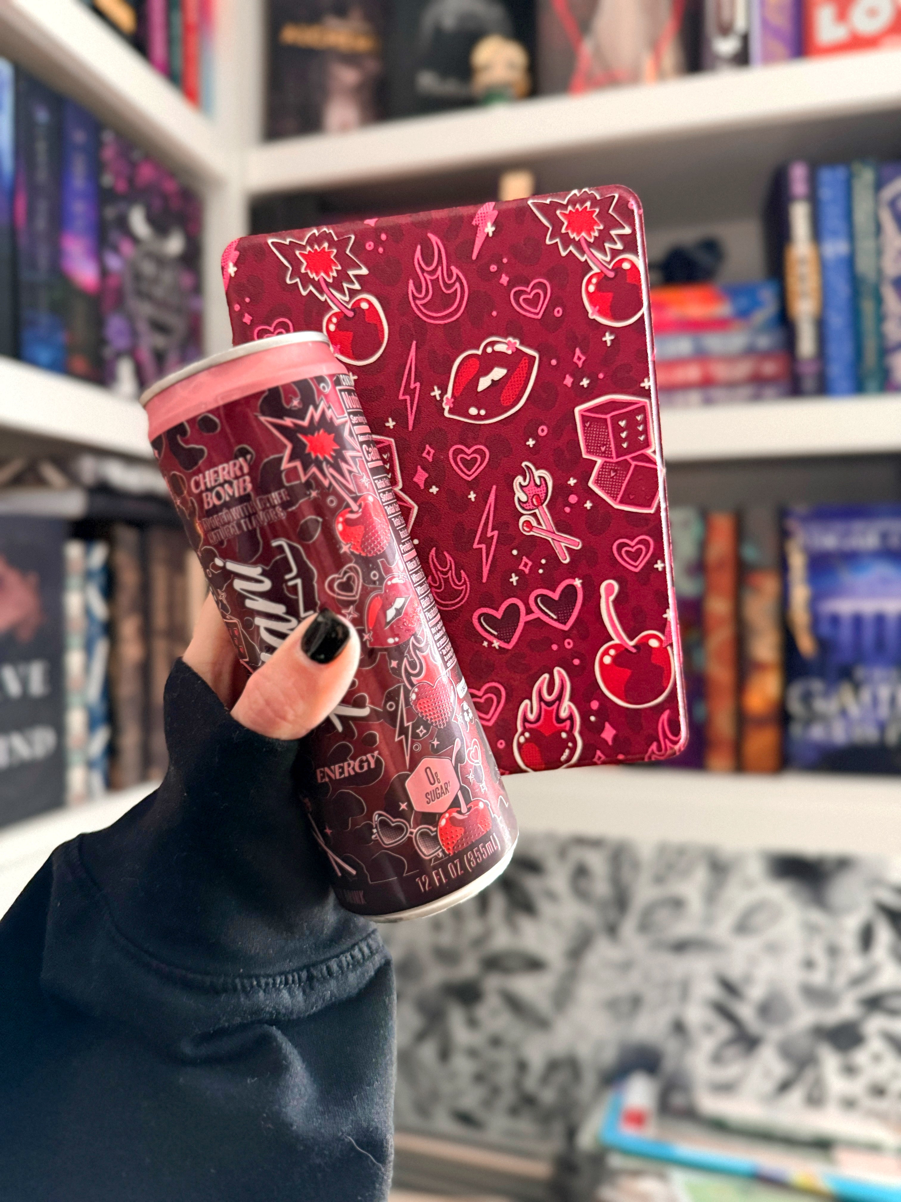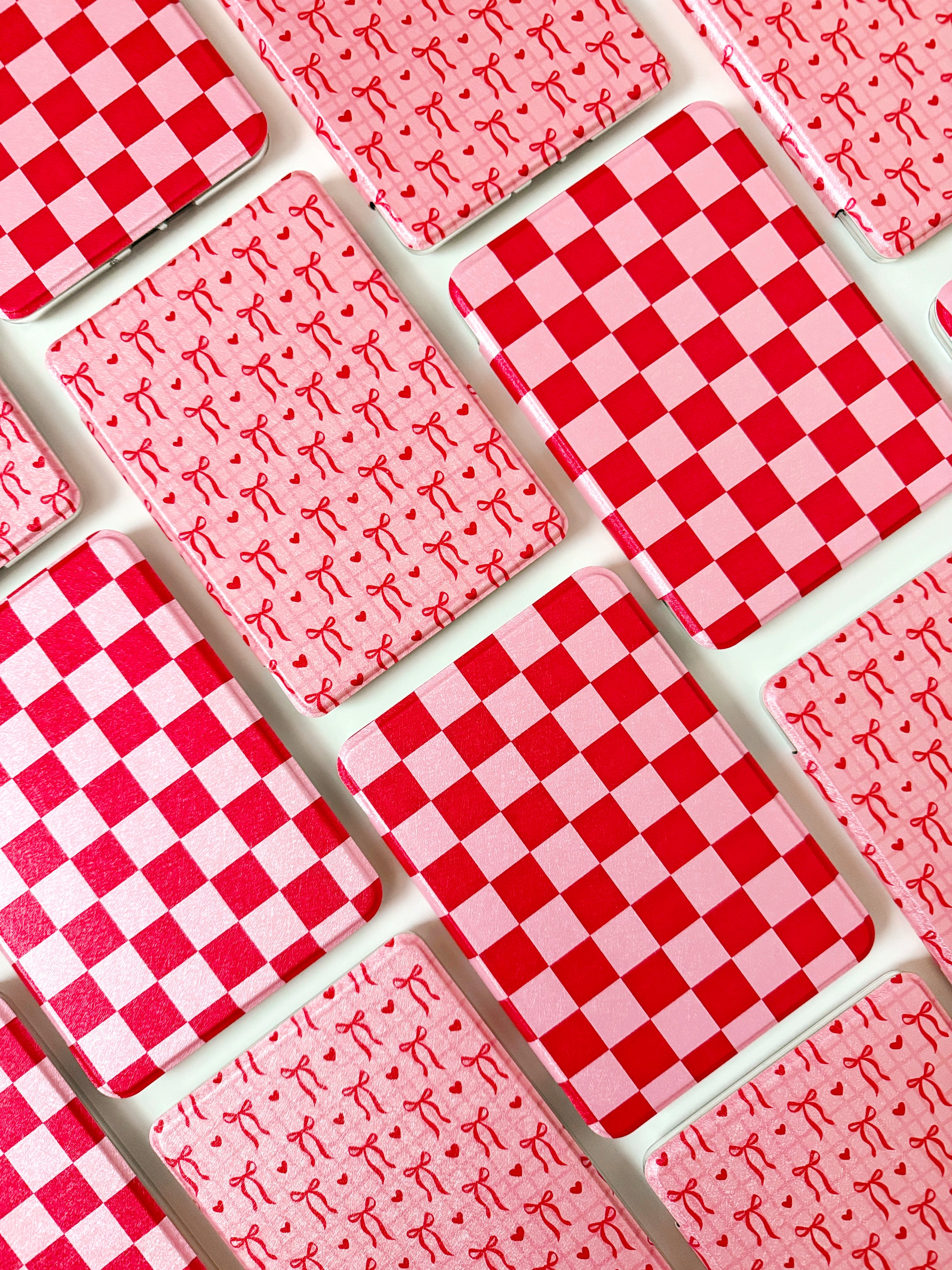 The Best of Both Kindle Case Cover with Clear Back and Cover Strap - Red and Pink Checkers - 11th + 12th Gen Paperwhite and Kindle Basic