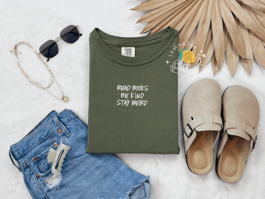 Read Books. Be Kind. Stay Weird. Embroidered Comfort Colors Tee
